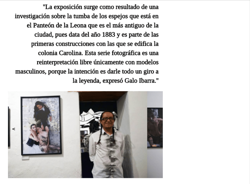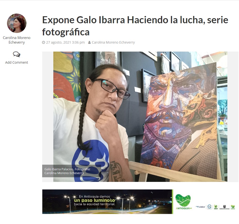 Agosto. Nota en el diario digital Al Poniente sobre la exposición individual Haciendo la Lucha, exhibida en el restaurante Flores y Sabores de Medellín, Colombia. https://alponiente.com/expone-galo-ibarra-haciendo-la-lucha-serie-fotografica/