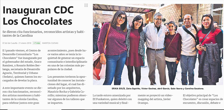 21 de enero inauguración del Centro Cultural Comunitario Los Chocolates, nota del diario El Sol De Cuautla.