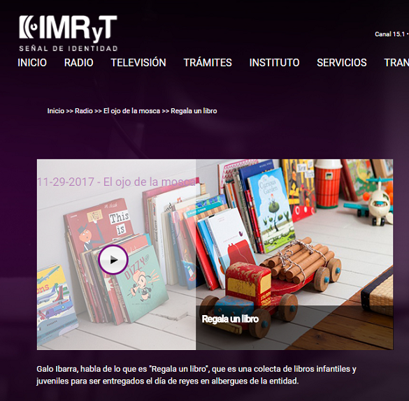 Noviembre; entrevista en el programa El Ojo de la Mosca del Instituto Morelense de Radio y Televisión, en esta ocasión para hablar sobre los centros de acopio de libros que se entregaron durante varios eventos en conmemoración del Día de Reyes, en diversos albergues y escuelas del estado de Morelos.