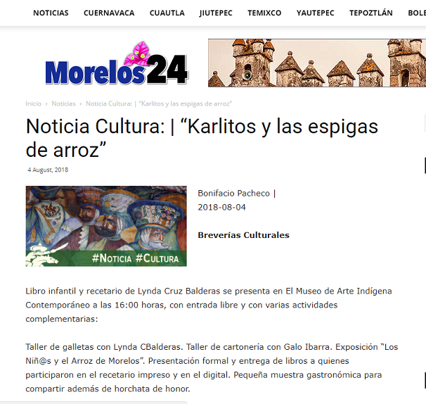 Agosto 12 . Caro La Cartonera, recopilando historias e identidad, Morelos en la Hora Nacional, Instituto Morelense de Radio y Televisión, Cuernavaca, Morelos.